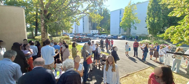 En trois ans, ce « café » à la sortie de la messe, a enrichi la vie de la communauté paroissiale d’Avon. Un groupe de bénévoles prépare et apporte le nécessaire (café, thé, jus de fruits, brioche et gâteaux, etc.).