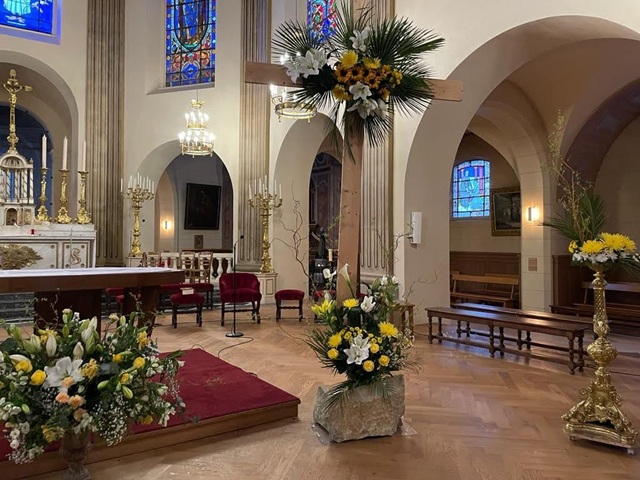 - Les fleurs, signe de la vie et de la Résurrection. Les fleurs sont des symboles puissants : elles naissent, s’ouvrent et se fanent, rappelant la fragilité de la vie ; mais elles annoncent aussi la vie nouvelle, la promesse du printemps et de la résurrection. Ainsi, dans l’église, les fleurs expriment la joie de la vie qui triomphe de la mort, particulièrement au temps pascal.