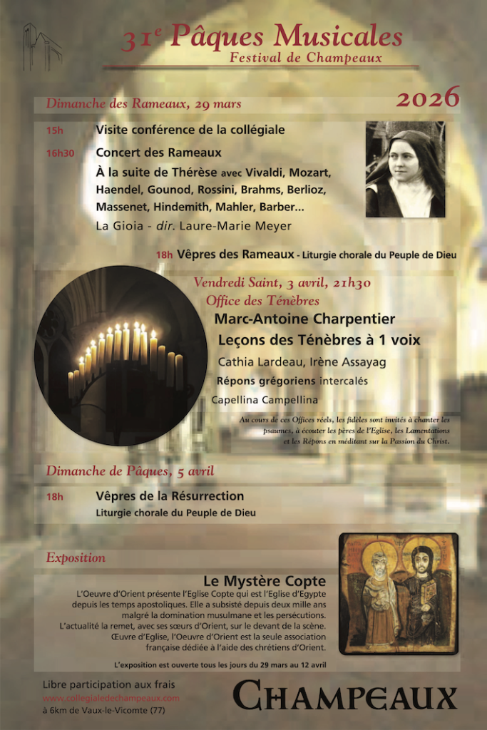 Le dimanche 29 mars, à partir de 15h, à la collégiale de Champeaux, au travers de lectures de textes de Guy Gaucher, son biographe, et des propres paroles de Thérèse, ponctués de musique vocale, découvrons ensemble sa « petite voie » !