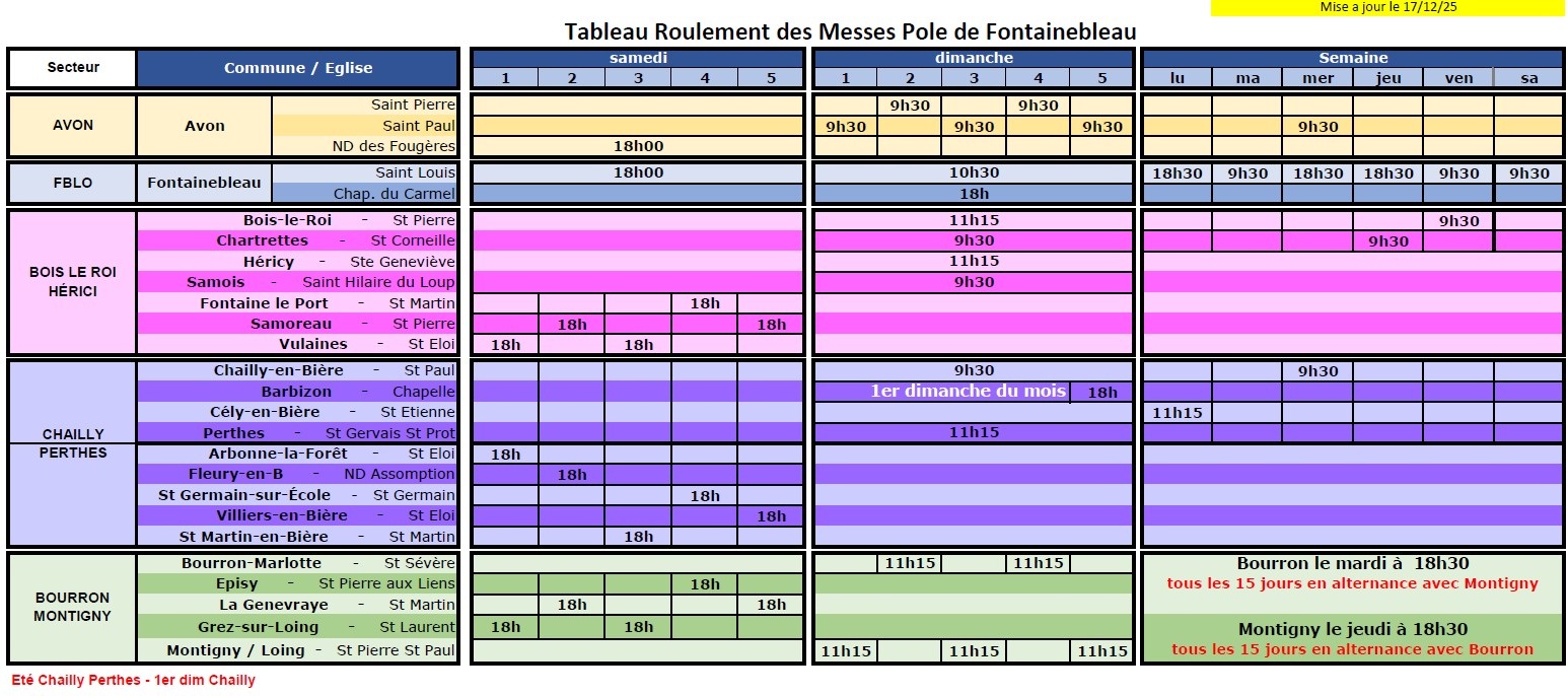 En période hivernale, le lieu de la messe peut changer dans certains secteurs. Merci de consulter la feuille paroissiale Marana Tha.